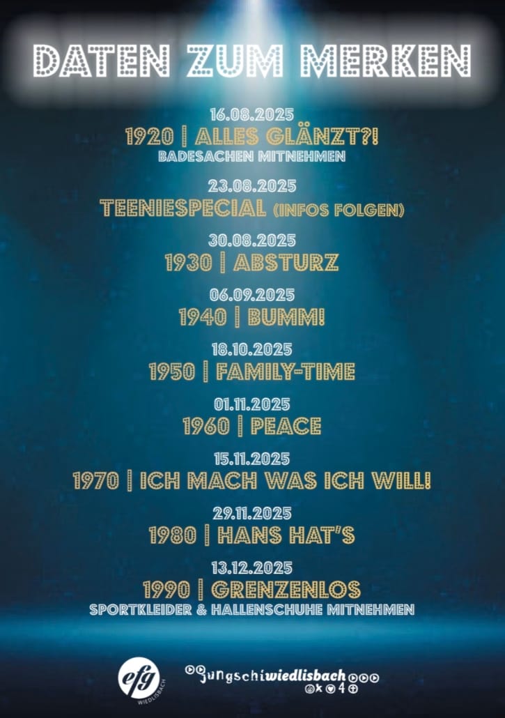 Die Jungschar Wiedlisbach existiert seit 1999 und ist der Evangelisch Freikirchlichen Gemeinde (EFG) in Wiedlisbach angeschlossen . Der BESJ (Bund Evangelischer Schweizer Jungscharen) ist unser Dachverband und bietet uns zahlreiche Aus- und Weiterbildungen an. Die Jungschar ist eine gemeinnützige Organisation und erhebt keine Mitgliederbeiträge. Durch Subventionen der EFG und zahlreichen Spendenaktionen finanzieren wir uns.